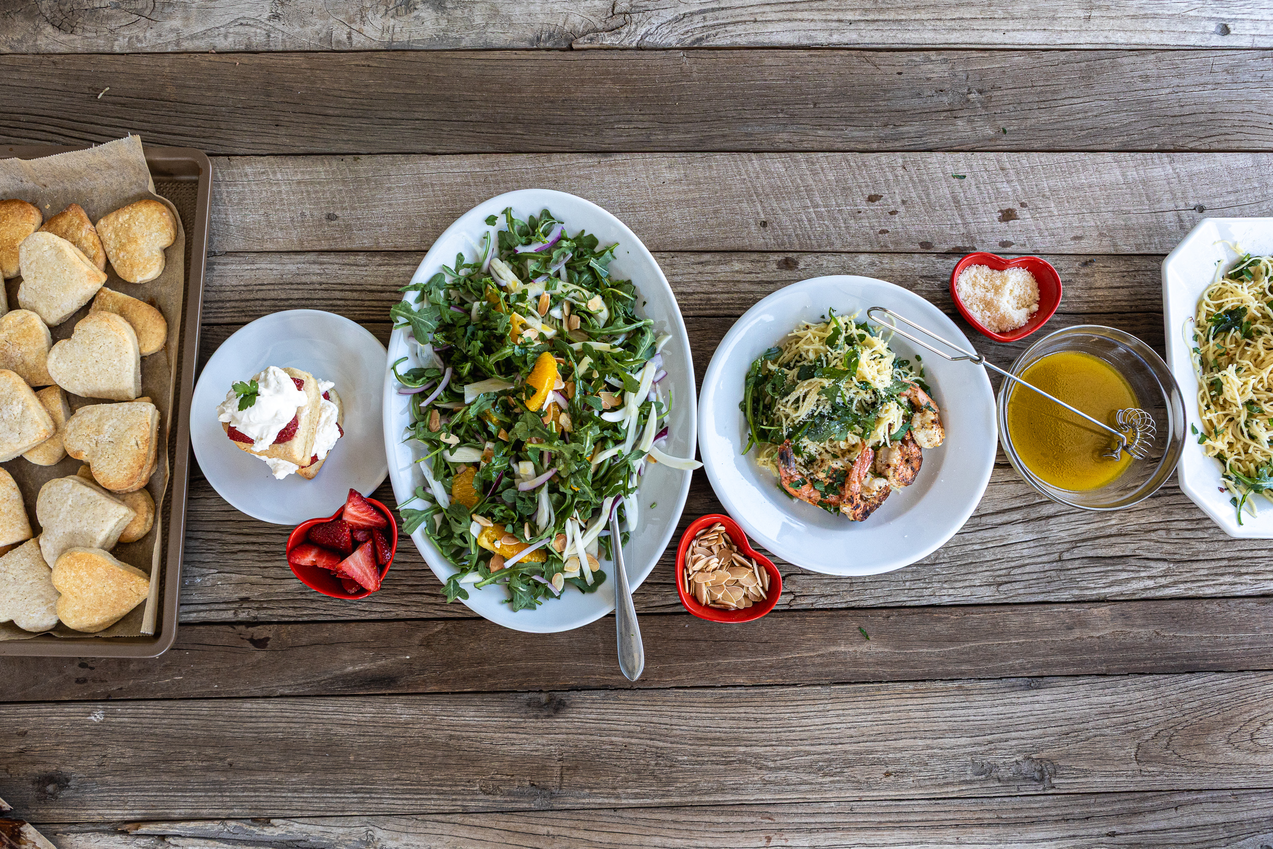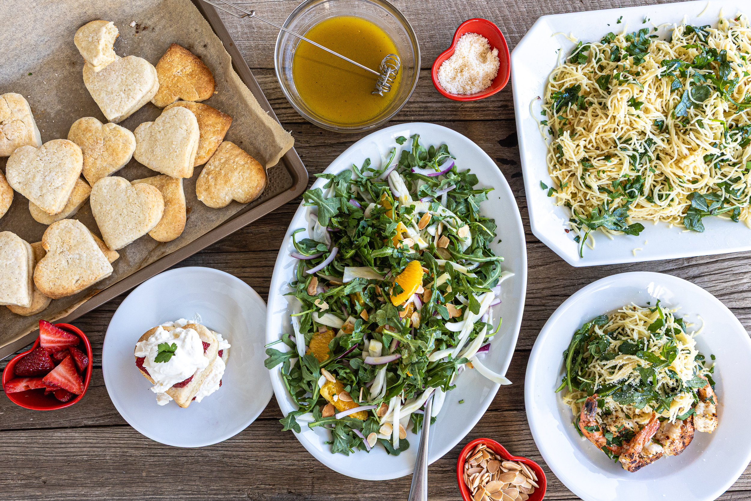 Featuring five go-to recipes that come together into a fresh, well-balanced Valentine’s Day menu. Each one is flavorful, approachable, and designed to help you cook with confidence while still feeling a little special. 🥬 Arugula Fennel Citrus Salad: Crisp & refreshing in all the right ways 🍊 Citrus Vinaigrette: The perfect tangy partner for your salad 🍋 Lemon Garlic Pasta with Wilted Arugula: Cozy w/a fresh twist 🍤 Lemon Garlic Shrimp: Elegant, & quick enough for a stress-free main 🍓 Homemade Strawberry Shortcake: Light, sweet, and the perfect ending With your purchase, you'll get: - 5 Recipes - each tested to make sure they are delicious - 2 Video Options for each recipe so you can choose what works best for you. One is a full length "Whip It Up With Us" video where we cook the recipe right alongside you. The other is a "Quickie" video, a fast-paced how-to that will whip you through a recipe in no time.
